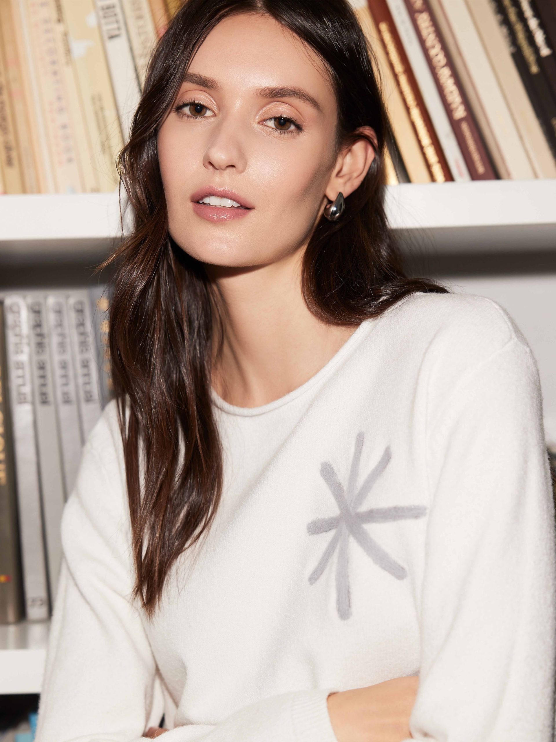 Embrace the cozy charm of winter with the Embroidered Snowflake Sweater. Featuring a crew neck and long sleeves, this cozy ecru white fabric offers warmth and elegance. The delightful snowflake embroidery and rounded hem create a playful, yet sophisticated look. Perfect for chilling at home or stepping out in cooler weather, it’s a winter wardrobe must-have.
